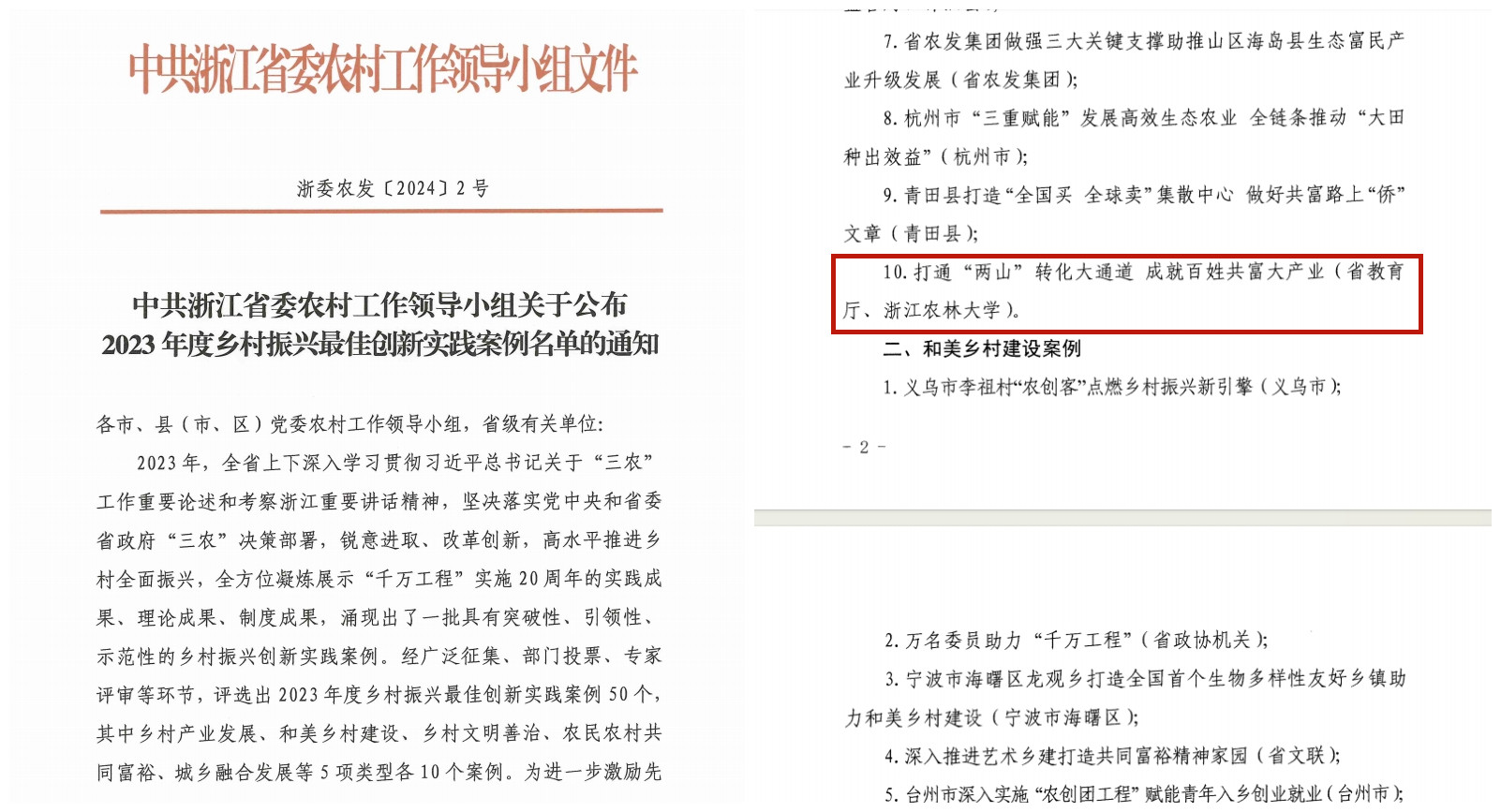 我校服務鄉村振興成果入選浙江省2023年度鄉村振興最佳創新實踐案例