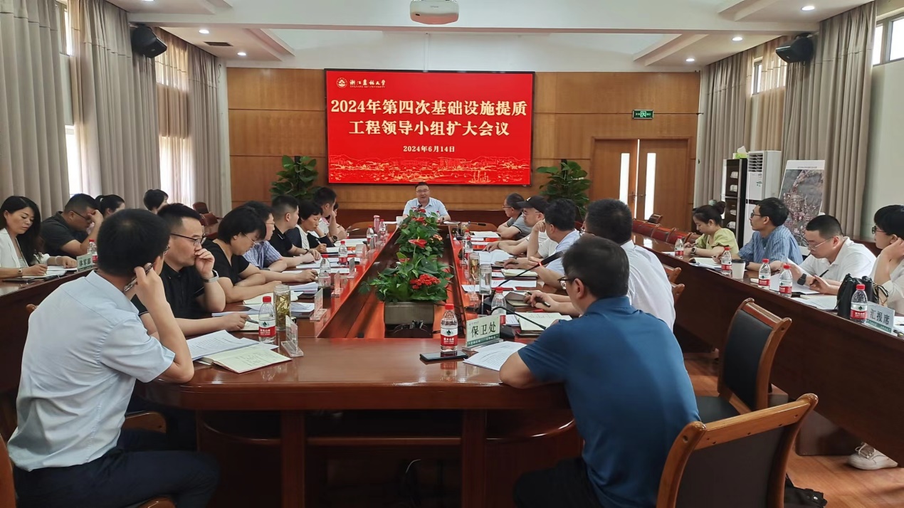 6月14日,校黨委書記朱斌主持召開學?;A設施提質工程領導小組擴大會議。校領導班子成員沈月琴、胡祖吉、徐愛俊、包松永出席會議。