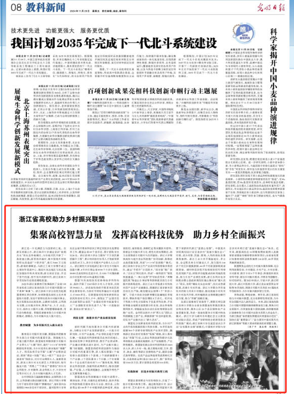 11月29日,《光明日?qǐng)?bào)》教科新聞版報(bào)道了由我校牽頭的浙江省高校助力鄉(xiāng)村振興聯(lián)盟成立兩年來開展的工作和成效。