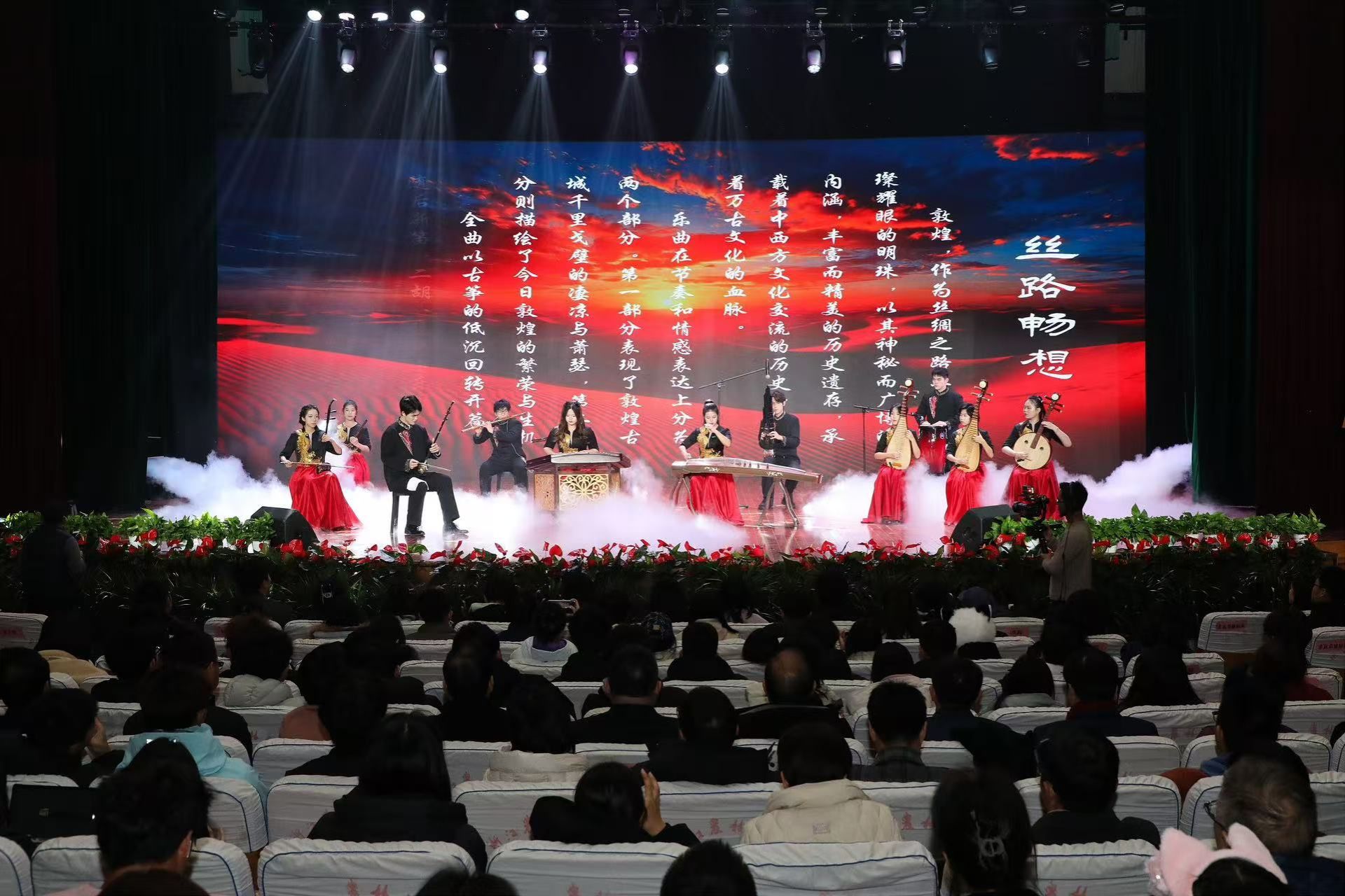 文藝節目合唱《青春模樣》詮釋了最美的青春模樣,民樂合奏《絲路暢想》帶領大家穿越敦煌4000年的歷史長河,去探尋絲綢之路的神秘魅力。離退休老師們帶來的排舞《我愛你中國》不僅表達了對祖國的美好祝愿,也是對退休生活的美好詮釋,心永遠年輕,夢依舊燦爛。