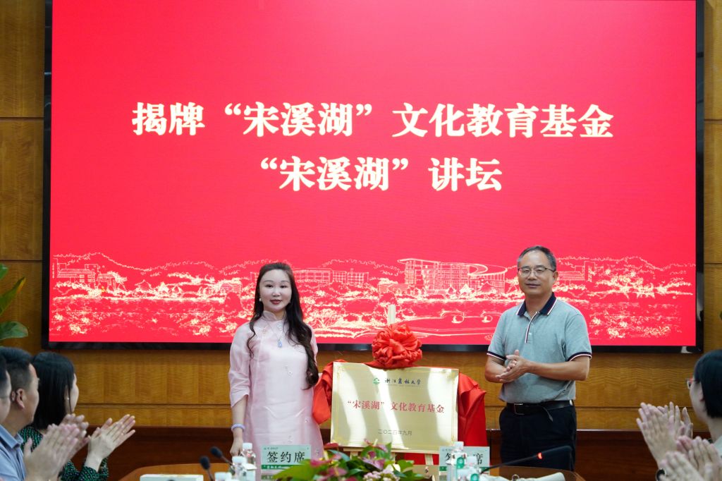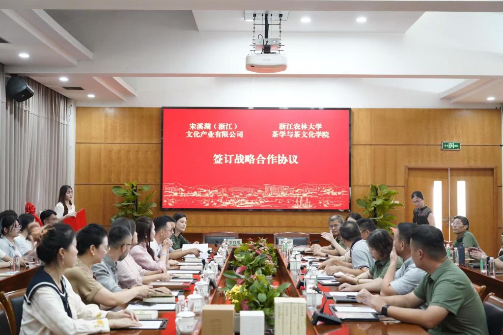9月9日,宋溪湖(浙江)文化產業有限公司與浙江農林大學茶學與茶文化學院戰略合作簽約暨捐贈儀式在東湖校區舉行。宋溪湖(浙江)文化產業有限公司董事長鄭小美、總經理楊鵬飛,副校長胡祖吉,校教育基金會負責人,企業代表,茶學院黨政班子成員和師生代表等參加儀式。