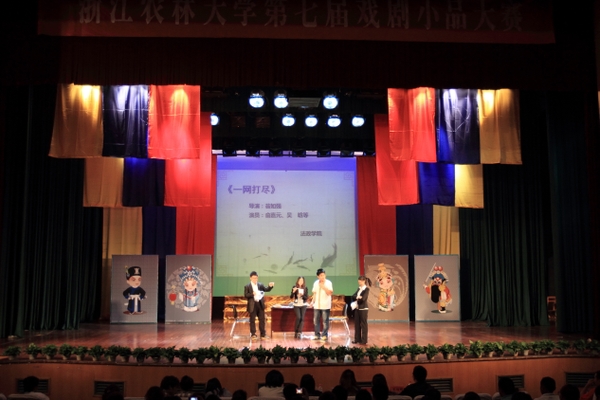 浙農林大新聞網訊 為積極響應學校號召,激發學生對生活和學習的熱情,充分展現我校學子的文藝才能,由校黨委宣傳部、學工部、校團委、文化學院聯合舉辦的校第七屆戲劇小品大賽決賽于4月27日在東湖校區活動中心影劇院如期舉行。校宣傳部、學工部、團委等相關負責人,文化學院黨政領導班子,各學院黨委(總支)副書記出席本次大賽。全校900余位師生到場觀看。