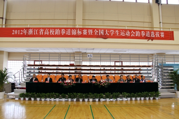 浙農(nóng)林大新聞網(wǎng)訊  4月12日至15日,2012年浙江省大學(xué)生跆拳道錦標(biāo)賽暨全國大學(xué)生運(yùn)動會選拔賽在我校舉行,此次大賽由浙江省教育廳、浙江省體育局主辦,浙江省大學(xué)生體育協(xié)會武術(shù)分會協(xié)辦,由我校承辦。