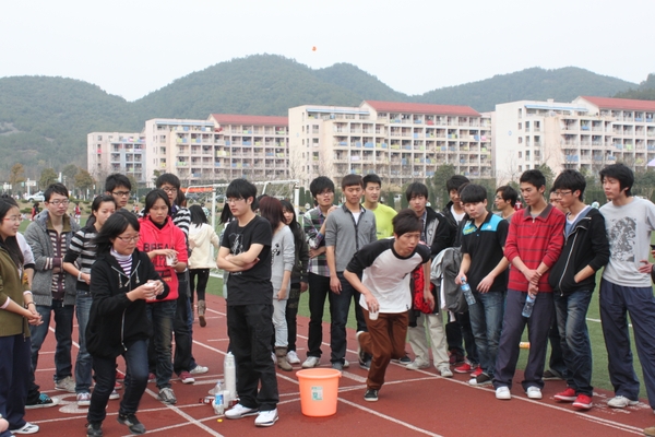 2009、2010級(jí)的100個(gè)同學(xué)組成10個(gè)團(tuán)隊(duì),開始進(jìn)行各項(xiàng)比賽。比賽項(xiàng)目頗具童趣,分別有:仙人指路,水上芭蕾,齊心協(xié)力,百發(fā)百中,命運(yùn)女神,霹靂嬌娃。與其說這是一場(chǎng)運(yùn)動(dòng)競(jìng)技賽,還不如說是一場(chǎng)頗具趣味的游戲活動(dòng),每個(gè)人都玩得不亦樂乎。最終,2009級(jí)園藝設(shè)計(jì)團(tuán)隊(duì)技?jí)喝盒廴〉玫谝弧?