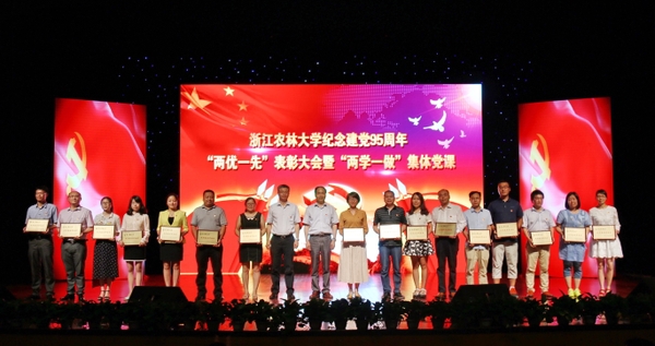 6月21日晚,我校慶祝建黨95周年“兩優一先”表彰大會暨“兩學一做”集體黨課在東湖校區隆重舉行。校黨政班子成員宣勇、周國模、方偉、史永安、鐘平、沈月琴、胡祖吉、童曉暉出席。