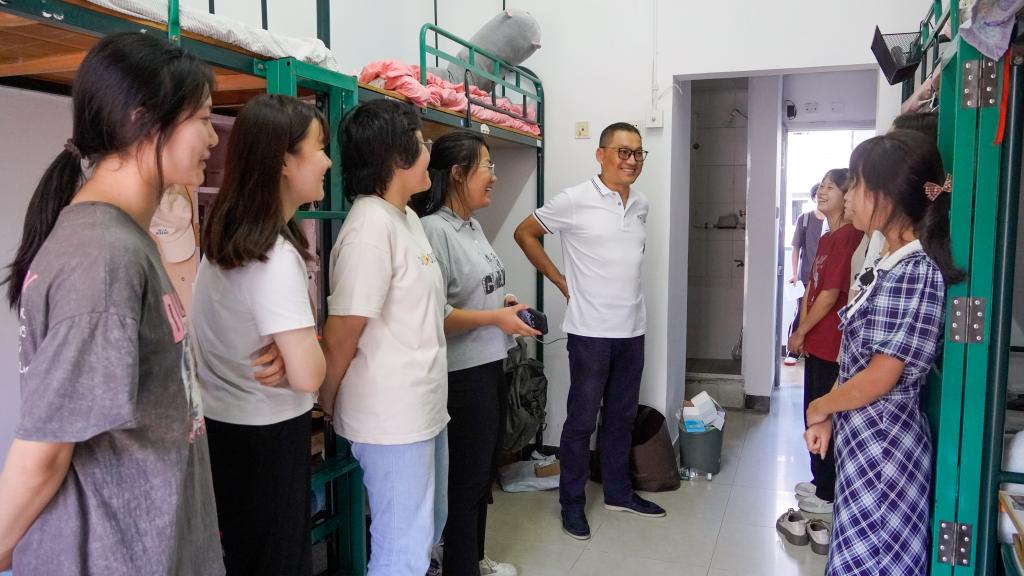 9月16日,環資院、碳中和學院院長馮華軍、黨委書記侯錫銘及黨政領導班子、專業負責人、輔導員、班主任深入2023級新生寢室走訪慰問,為新生送上問候關懷。