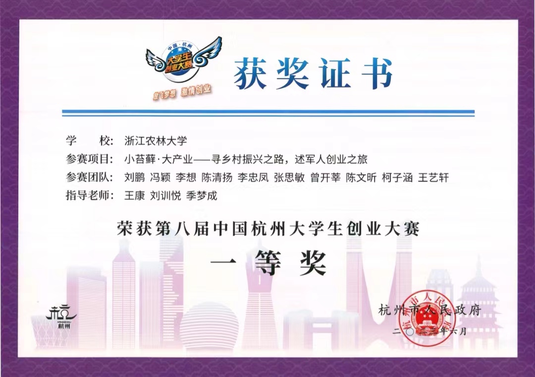近日,第八屆中國杭州大學生創業大賽總決賽在杭州師范大學落幕,我校參賽團隊在大賽中斬獲佳績,獲得總決賽一、二、三等獎各1項,學校榮獲“優秀組織獎”。