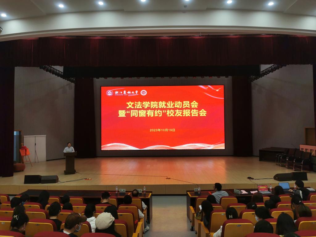 10月19日,文法學院舉辦2024屆就業動員會暨“同窗有約”校友報告會。文法學院黨委書記朱紅東出席會議,2024屆畢業生參加會議,會議由文法學院相關負責人主持。
