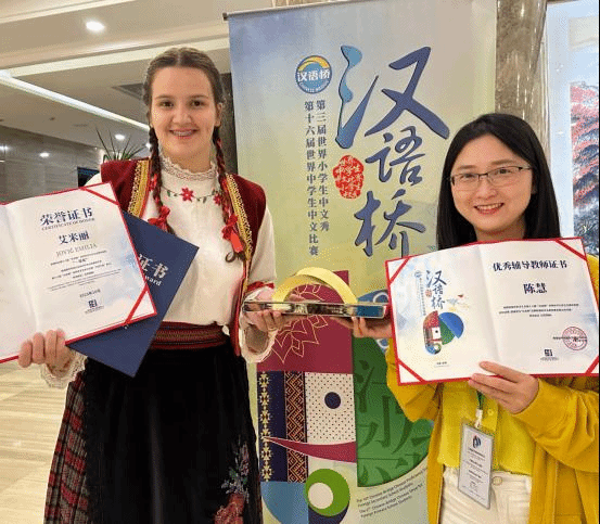 10月30日,第16屆“漢語橋”世界中學生中文比賽落下帷幕,諾維薩德大學孔子學院學員艾米麗喜獲一等獎。艾米麗獲得來華攻讀學位課程的國際中文教師獎學金,并被授予“漢語大使”稱號;諾大孔院教師陳慧獲得“優秀輔導教師”證書。這是諾大孔院在“漢語橋”比賽中取得的新突破。