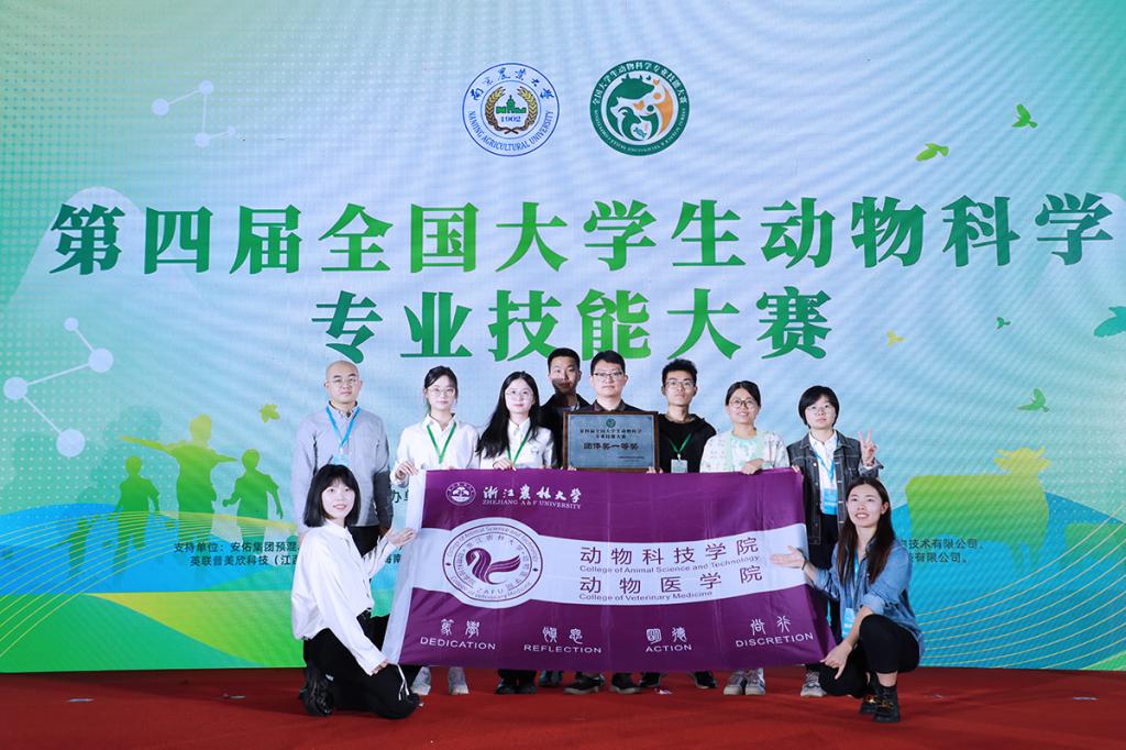 10月29日,由教育部動(dòng)物生產(chǎn)類專業(yè)教學(xué)指導(dǎo)委員會(huì)指導(dǎo)的第四屆全國大學(xué)生動(dòng)物科學(xué)技能大賽在南京農(nóng)業(yè)大學(xué)圓滿落幕。我校動(dòng)物科學(xué)專業(yè)學(xué)生周琦璐、法春梅、李明慧、祁凌天和李仁許組成的代表隊(duì)(領(lǐng)隊(duì):段星教授;指導(dǎo)老師:王永俠、王芷筠、黃敏、席華明)以出色的專業(yè)技能和競(jìng)技表現(xiàn)榮獲團(tuán)體一等獎(jiǎng)和單項(xiàng)一等獎(jiǎng)的優(yōu)異成績(jī)。
