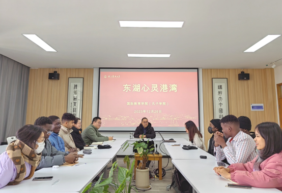 12月26日上午,國教學院心理輔導站舉辦 “我為學院發展獻一言”東湖心靈港灣活動,進一步傾聽學生心聲,加強交流,助力提高學生服務。國教學院書記、院長趙有華,學生管理負責人,心理輔導站成員和國際學生代表出席活動。