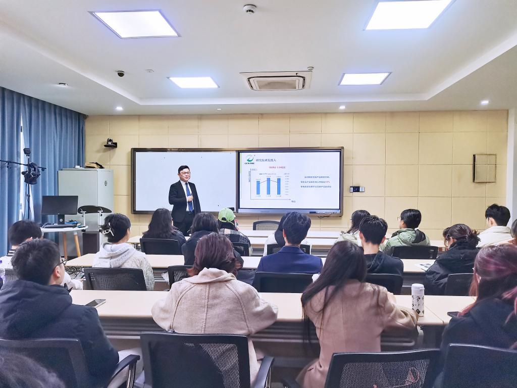 學院相關(guān)工作負責人對李偉良一行的到來表示熱烈歡迎,并詳細介紹了學院在教學科研、人才培養(yǎng)、師資隊伍等方面的優(yōu)勢,希望雙方能充分利用學院與企業(yè)的資源,在產(chǎn)教融合、創(chuàng)新創(chuàng)業(yè)大賽、就業(yè)指導等方面展開合作。李偉良從公司的經(jīng)營理念、公司發(fā)展現(xiàn)狀、職員晉升發(fā)展等介紹了公司整體情況。交流洽談后,在學2-212舉行了專場招聘宣講會,李偉良從企業(yè)簡介、企業(yè)文化、未來發(fā)展、招聘崗位四個方面介紹了公司,并針對同學們關(guān)心的問題進行解答。
