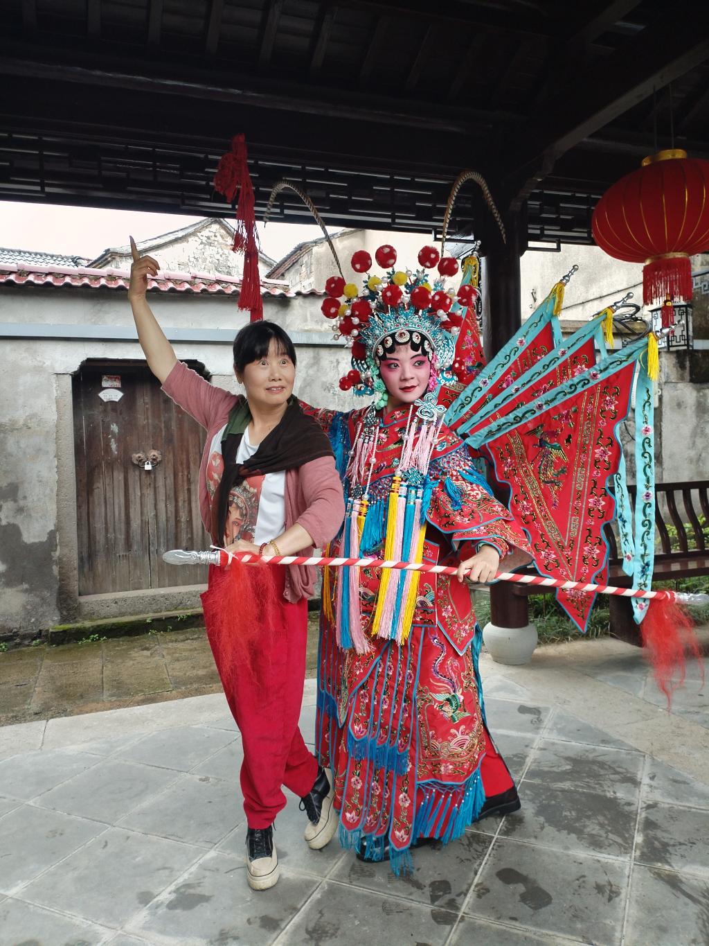 鄭店村被列入第五批中國傳統村落名錄,尤以婺劇文化最具特色。研學期間,同學們分體驗組、打卡組和采訪組,深度體驗當地婺劇文化和手工藝品制作,采訪婺劇傳承人、手工藝匠人和書畫藝術家,在考察鄉村文化魅力的同時,磨煉專業技能。