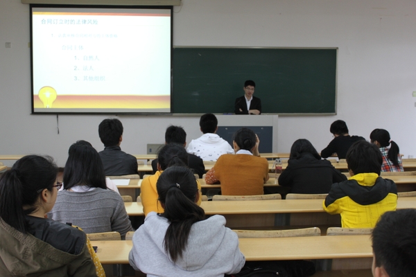 浙農(nóng)林大新聞網(wǎng)訊 4月25日,學生處就業(yè)指導服務中心在教4205舉行“買賣關(guān)系中的法律風險提示”講座。我校大學生創(chuàng)業(yè)法律服務團成員、浙江滿江紅律師事務所律師黃錦波應邀主講。近百名有創(chuàng)業(yè)意愿的大學生聆聽了本次講座。