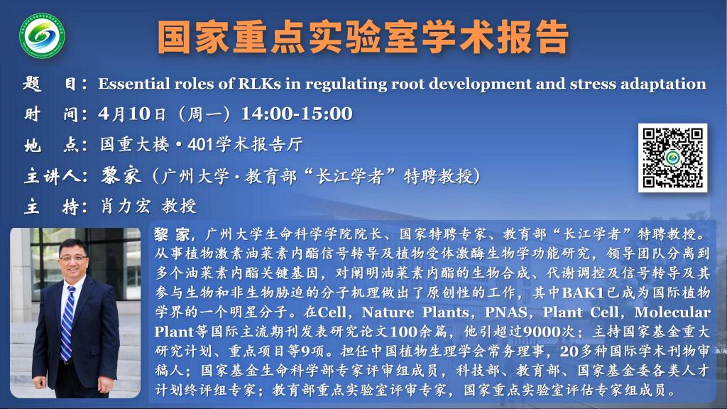 講座預告:Essential roles of RLKs in regulating root development and stress adaptation